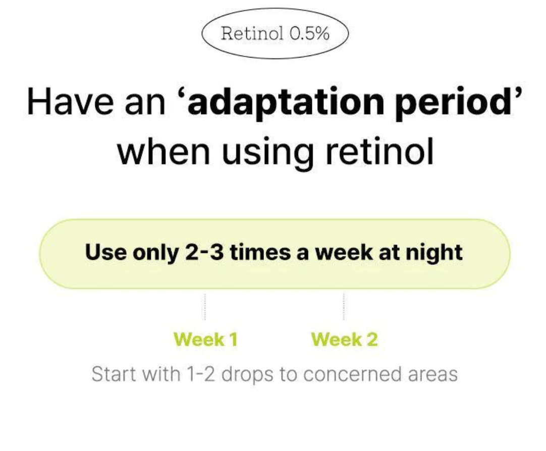 - Follow with moisturizer. Initially use 2–3 times a week, gradually increasing frequency to once a day, after 3 weeks, after building tolerance. Apply sunscreen during daytime.