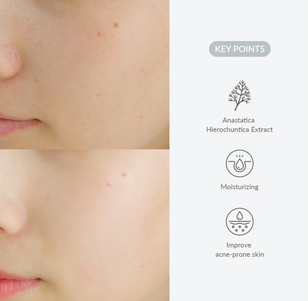- Acne care & Moisturizing care - Anastatica extract provides skin with high moisturization and soothes rough and tough skins caused by the external environment. It is available to all skin types such as dry, rough, and prone-acne skin. Have a relaxing time every day by providing a luxury daily mask onto the face.
