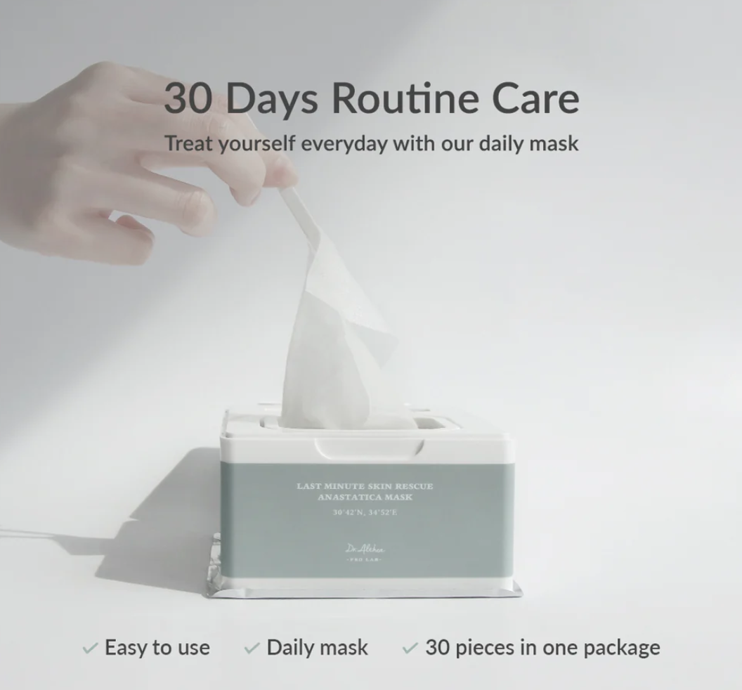 - Daily homecare mask - Last Minute Skin Rescue Anastatica Mask contains 30 pieces of facial mask, which can be used for a month. It is cost-effective and has a rich amount of natural ingredients that are nutritious to the skin.
