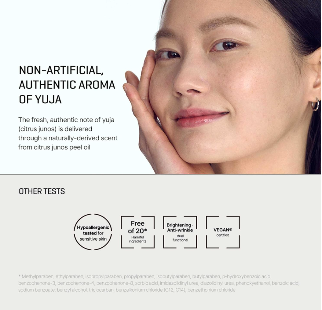 Water, Glycerin, Glycereth-26, Niacinamide (2%), Citrus Junos Fruit Extract (10000ppm), Methylpropanediol, 1,2-Hexanediol, Hydroxyacetophenone, Arginine, Acrylates/C10-30 Alkyl Acrylate Crosspolymer, Butylene Glycol, Hydroxyethylcellulose, Allantoin, Carbomer, Propanediol, Polyglyceryl-4 Caprate, Polyglceryl-6 Caprate, Adenosine, Ethylhexylglycerin, Disodium EDTA, Citrus Tangerina (Tangerine) Peel Oil, Coptis Japonica Root Extract, Citrus Paradisi (Grapefruit) Peel Oil, Panthenol, Tocopherol, Portulaca Oleracea Extract, Helianthus Annuus (Sunflower) Seed Oil, Pogostemon Cablin Oil, Cymbopogon Martini Oil, Arbutin, 3-O-Ethyl Ascorbic Acid, Tricholoma Matsutake Extract, Scutellaria Baicalensis Root Extract, Oryza Sativa (Rice) Extract, Angelica keiskei Leaf/Stem Extract, Panax Ginseng Root Extract, Rosmarinus Officinalis (Rosemary) Leaf Extract, Hyaluronic Acid, Hydrolyzed Hyaluronic Acid, Sodium Hyaluronate, Glutathione, Limonene, Geraniol.