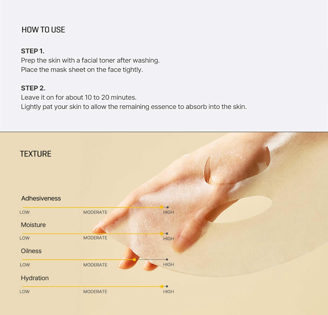 After cleansing and toning, apply this sheet mask. Gently adhere sheet mask onto face and apply for 10 - 20 minutes. Discard mask after usage and gently pat remaining essence for further absorption.